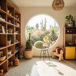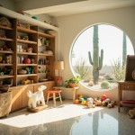 1960s Palm Springs Inspired Playroom with Montessori Toys and Desert Cactus View