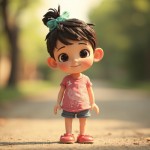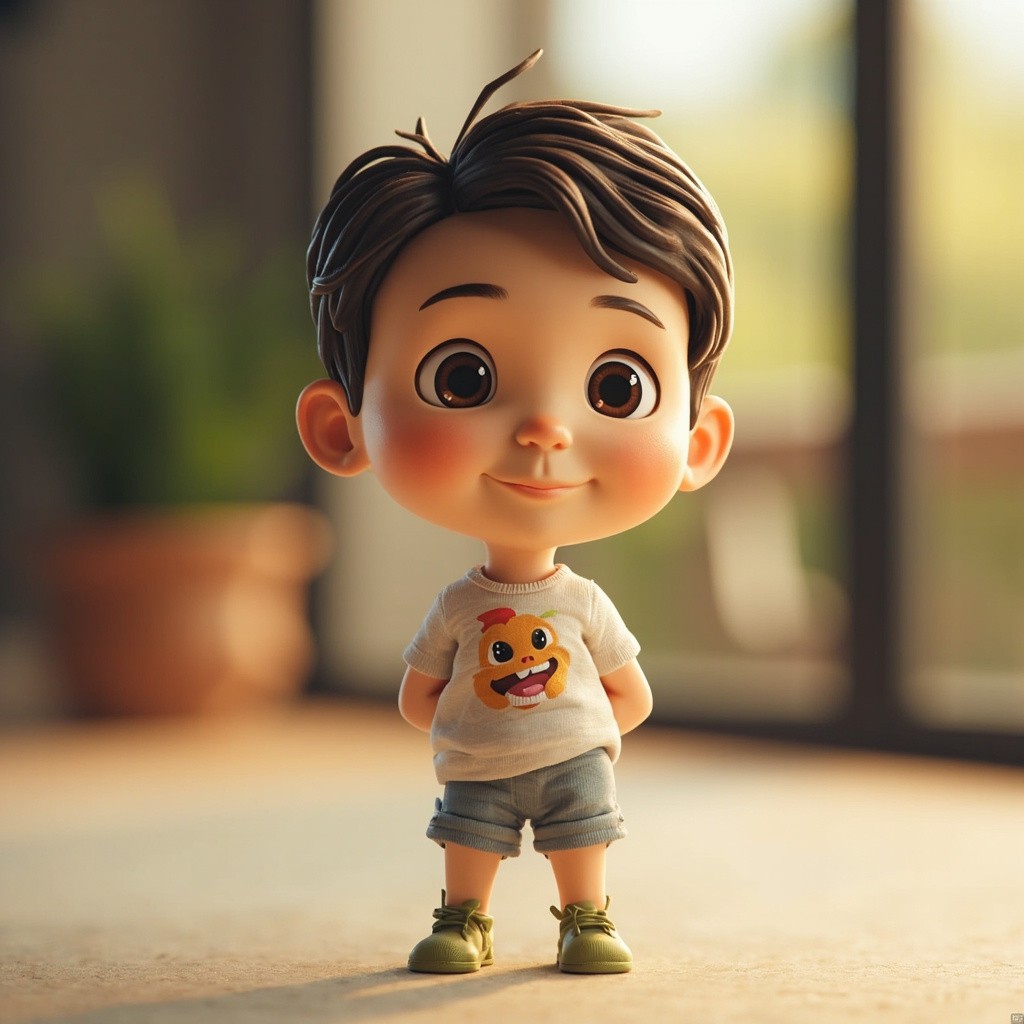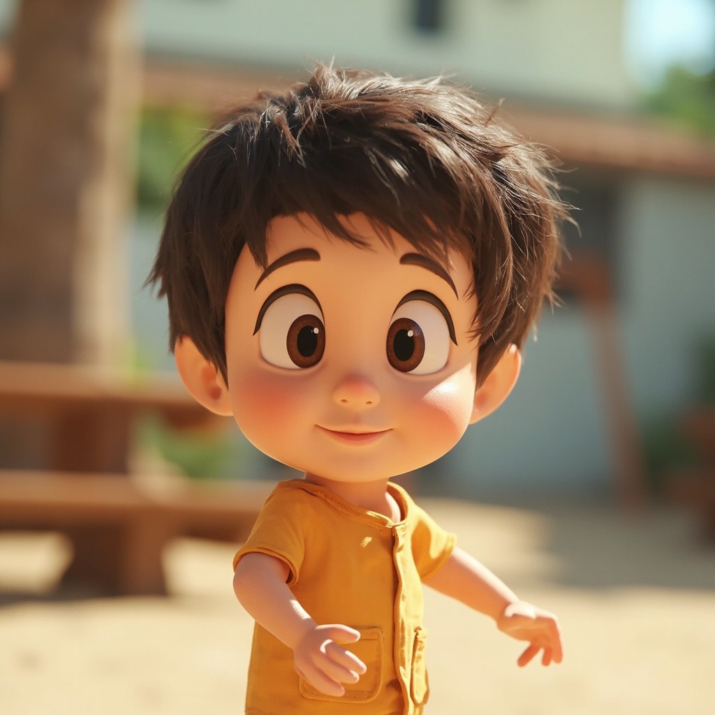 Cute 3D Cartoon Style Kid with Realistic Blurred Background