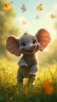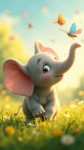 Baby Elephant Playing with Butterflies in Sunny Meadow