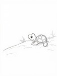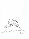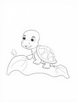 Baby Turtle Sliding Down Leaf Hill, Cartoon Coloring Page