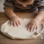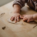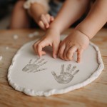 Minimalist Baby Hands Stamp in Clay on Wood Table