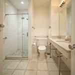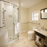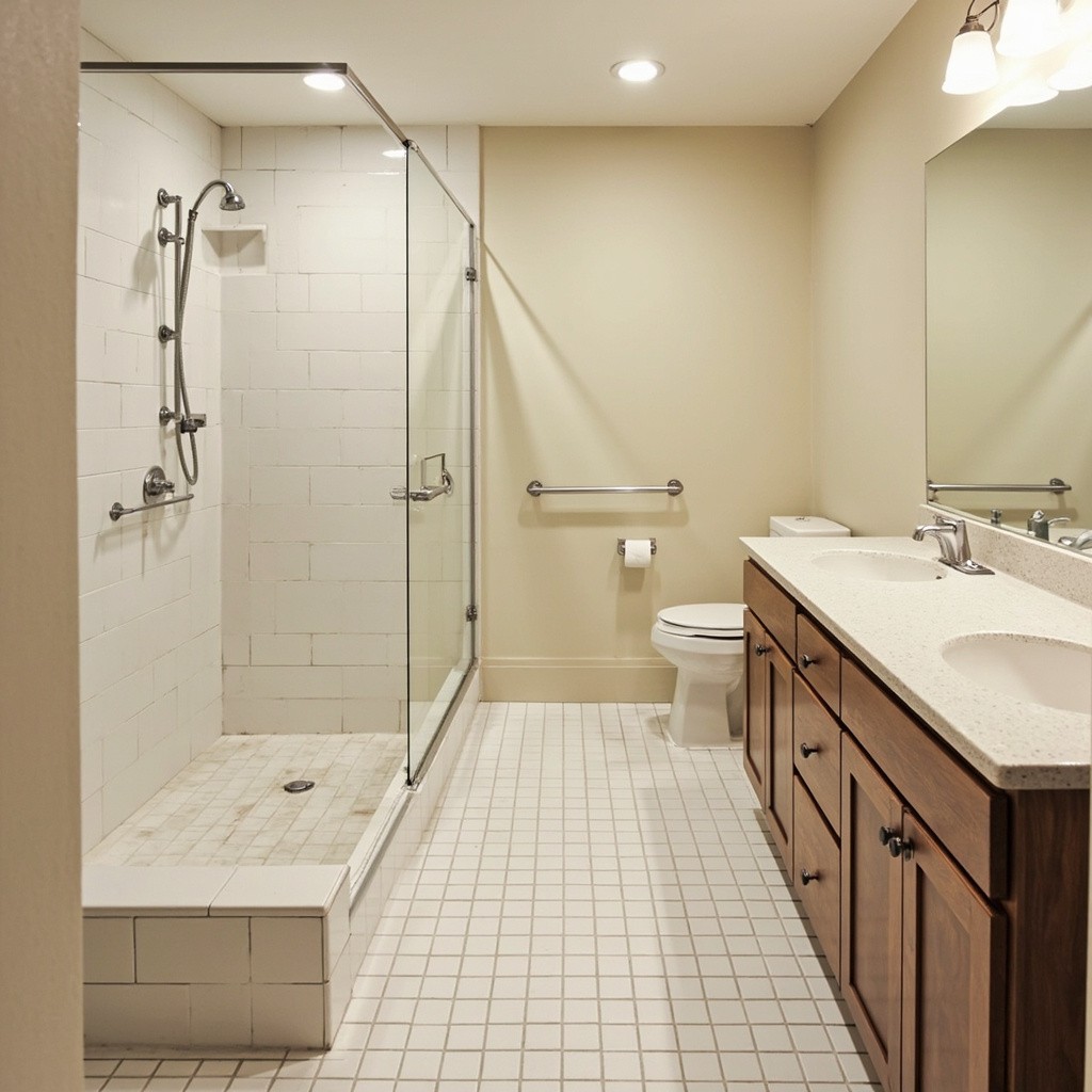 Elderly-Friendly Bathroom Design with Walk-In Shower and Twin Sinks