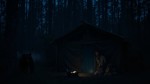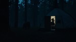 Man Camping in Forest with Bear Outside at Night