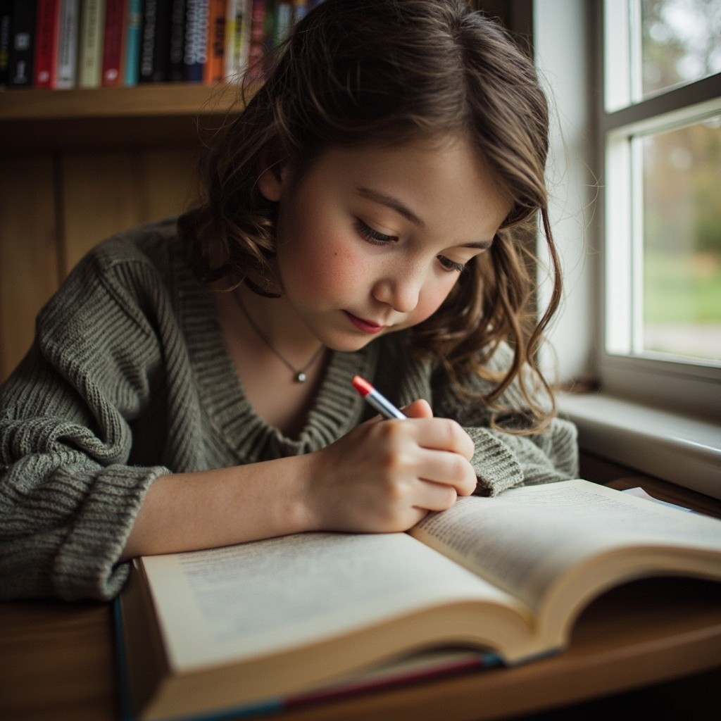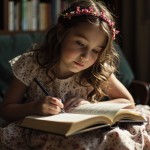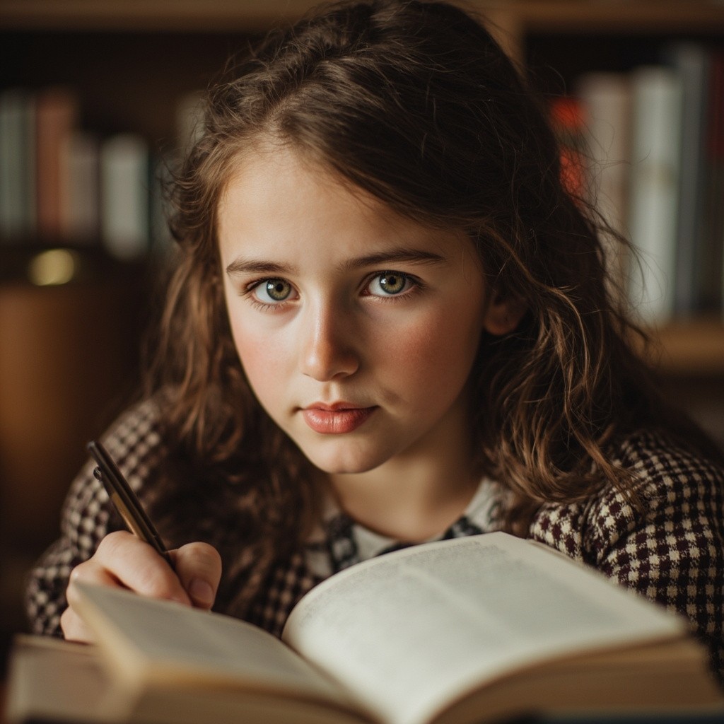 Beautiful Woman Writing in Book