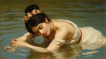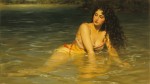 Raja Ravi Varma Portrait of Beautiful Woman Bathing in River from Mahabharata
