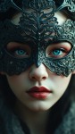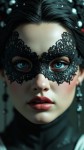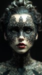 Cyberpunk Symmetrical Portrait of Divine Women with Lace Patterned Mask, 3D Photorealism
