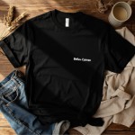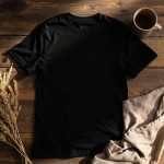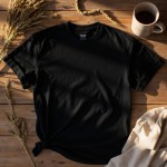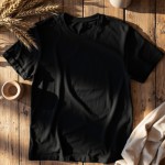 Bella+Canvas 3001 Black T-Shirt on Rustic Wood with Minimal Props