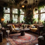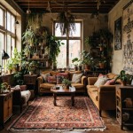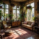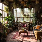 Bohemian Living Room with Vintage Furniture and Hanging Plants