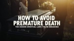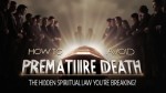 Create realistic YouTube video thumbnail for my video title: How to Avoid Premature Death: The Hidden Spiritual Laws You’re Breaking!" Add the title and realistic image of a funeral background with people surrounding a coffin, it should be unique and professional thumbnail, make the thumbnail background brighting