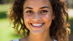 Close-Up of Smiling Young Woman with White Teeth Outdoors
