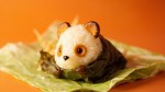 The style of the picture is a realistic style with bright colors and rich details. A creative zongzi with glutinous rice as the main body and zongye firmly wrapped into the shape of [Giant Panda]. The body of [Giant Panda] is full, the shape is cute, and the glutinous rice particles are full, shiny, and closely arranged, showing a delicate texture. [Giant Panda] The zongzi are placed on the light green zongye mat, and the overall warm color highlights the cuteness of the zongzi. In the composition, the long view, the zongzi are located in the center of the picture, and the zongye mat enhances the stability of the picture.