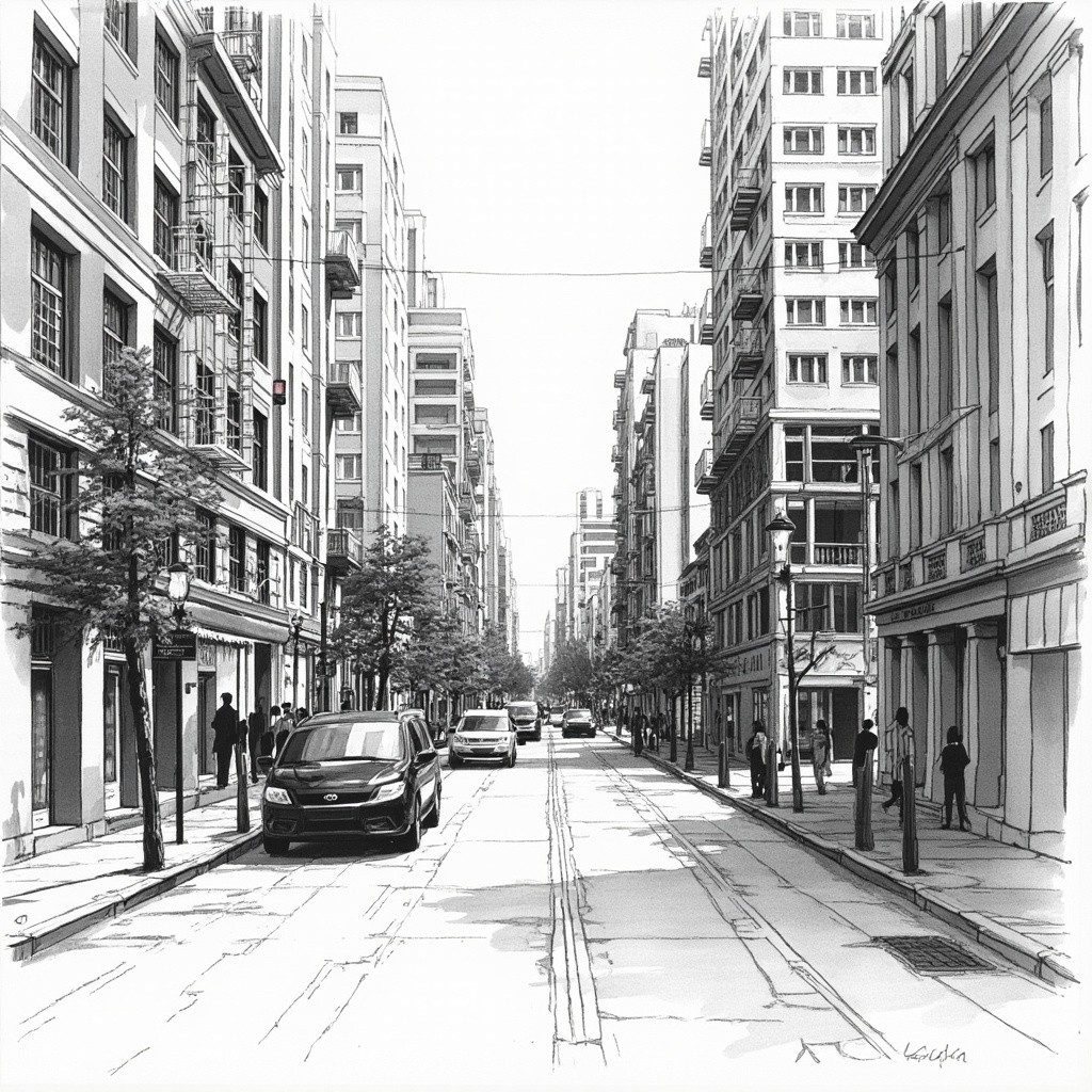 Street Drawing in a Busy City