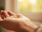 Close-Up of Acupuncture Needles in Hand with Natural Daylight