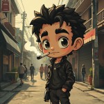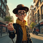 Cartoon Character Smoking in Street Style