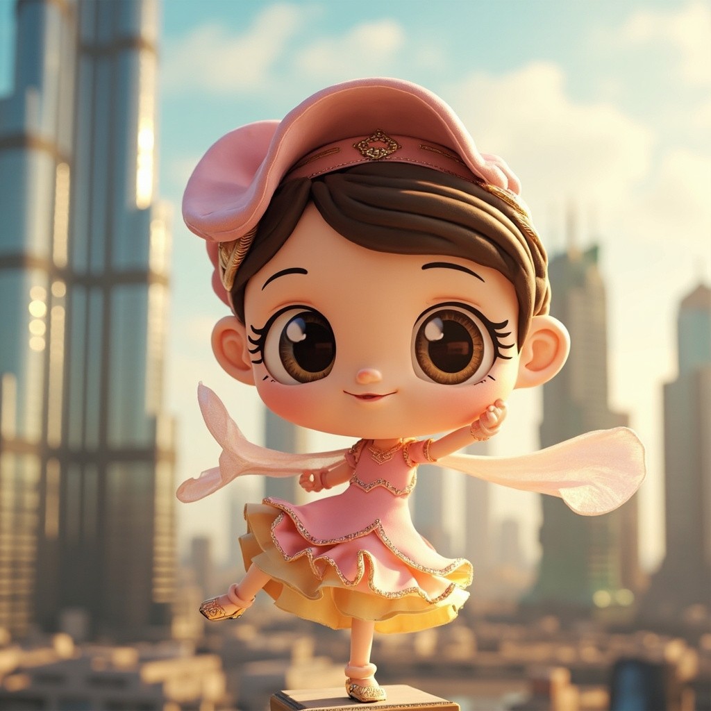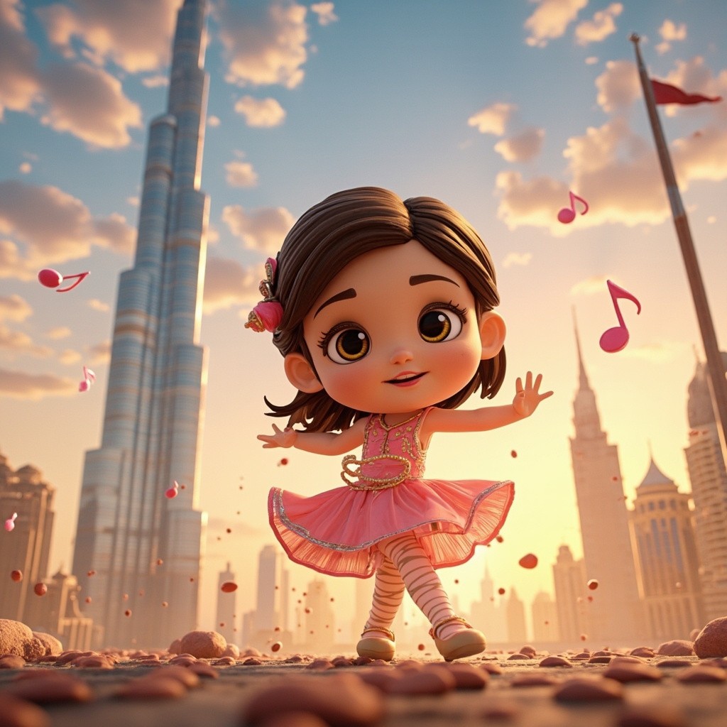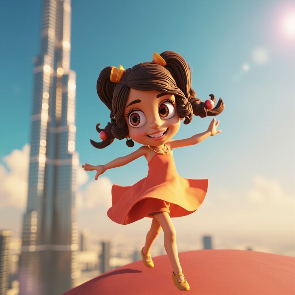 3D Cartoon Girl Dancing on Burj Khalifa, Dubai