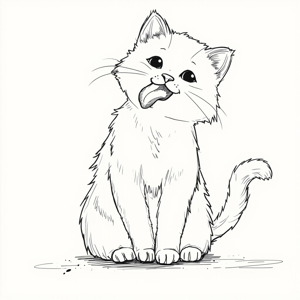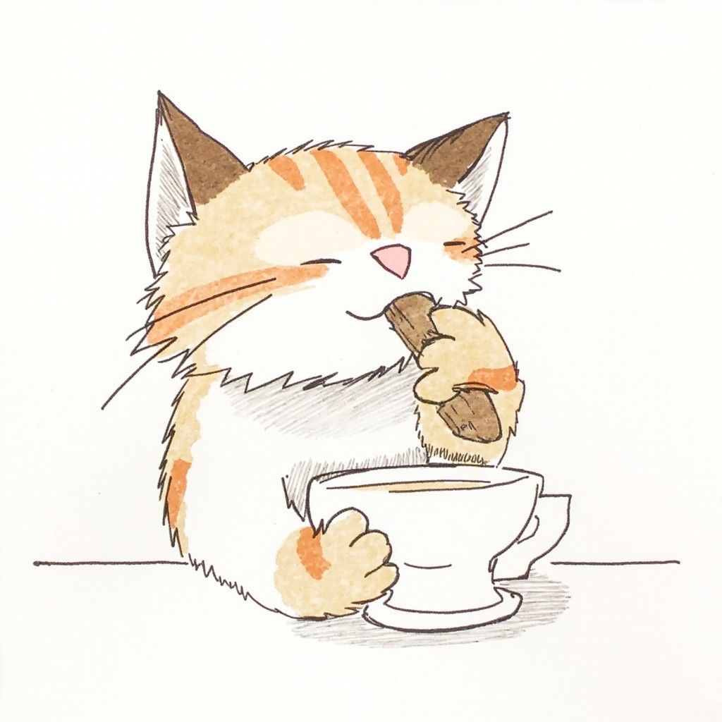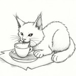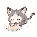 Cat Eating Illustration
