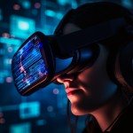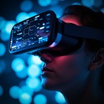 Close-Up Virtual Reality Headset with Glowing Interface, Tech Marketing Theme