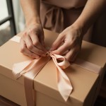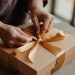 Close-Up of Hands Tying Satin Ribbon on Luxury Gift Box