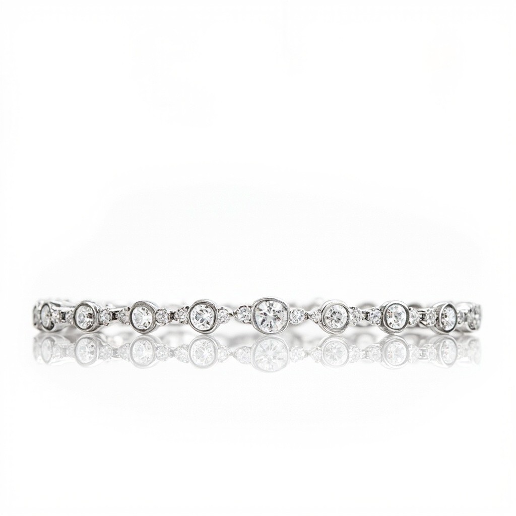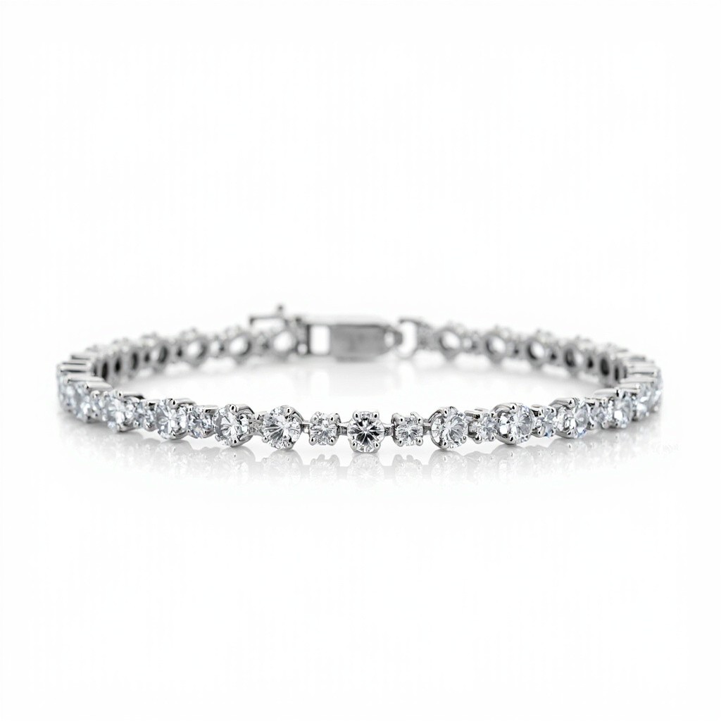Diamond Tennis Bracelet in Platinum Isolated on White Background