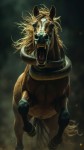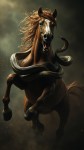 Struggling Stallion Horse Wrapped by Cobra Snake in Horror Scene