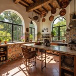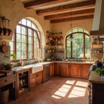 Mediterranean Kitchen with Arched Windows and Mosaic Tiles