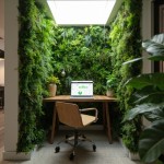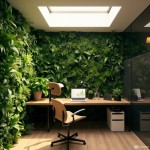 Sustainable Home Office with Moss Wall, Walnut Desk, and Skylight