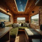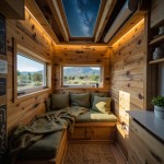 Compact Tiny House Interior with Skylight and Biodegradable Textiles