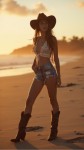 Coastal Cowgirl Outfit at Sunset on Windswept Beach