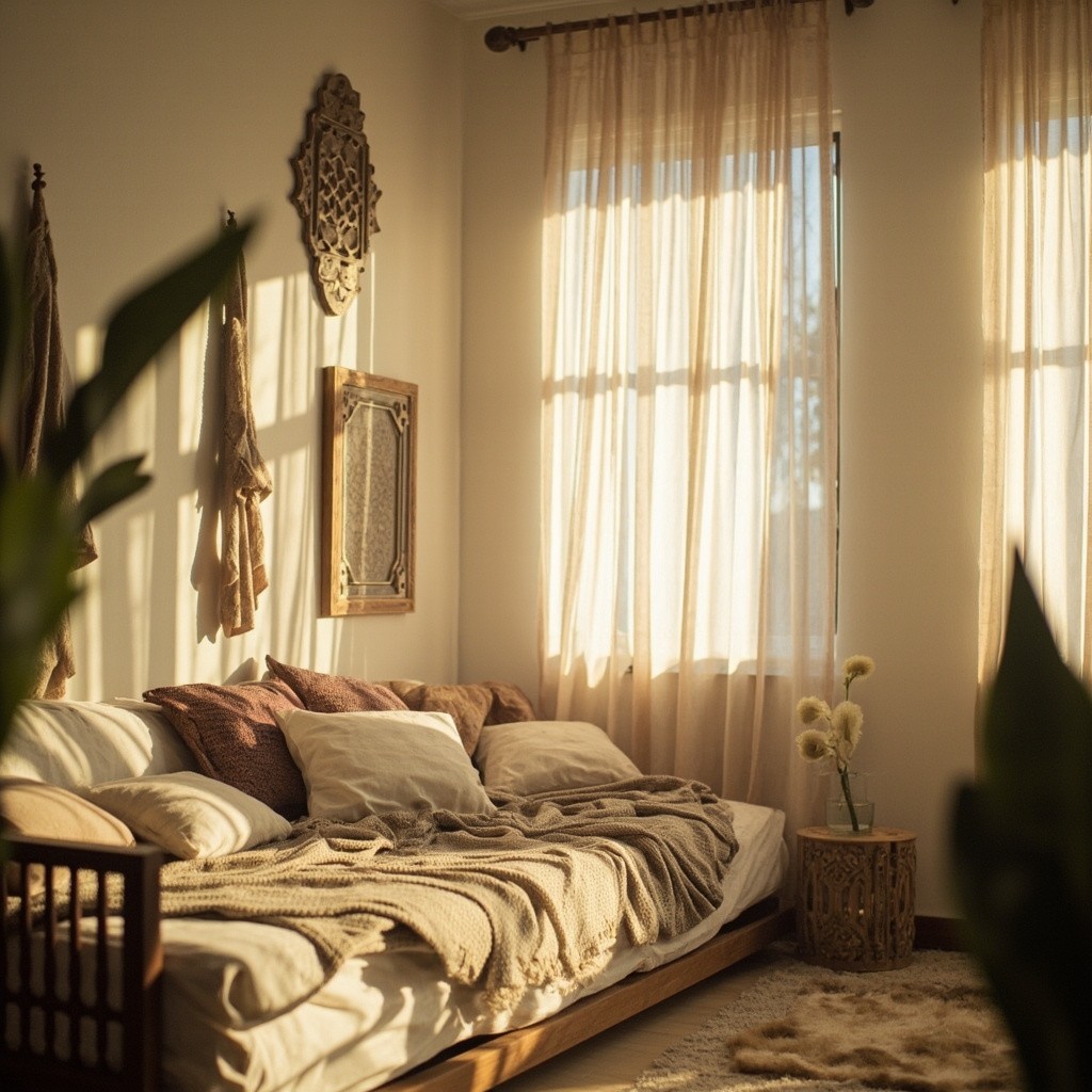 Serene Muslim Home Interior with Subtle Islamic Wall Decor