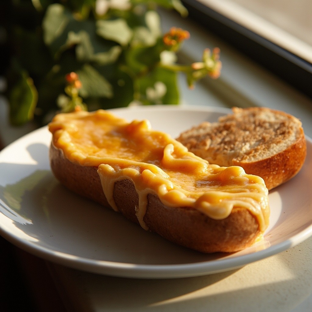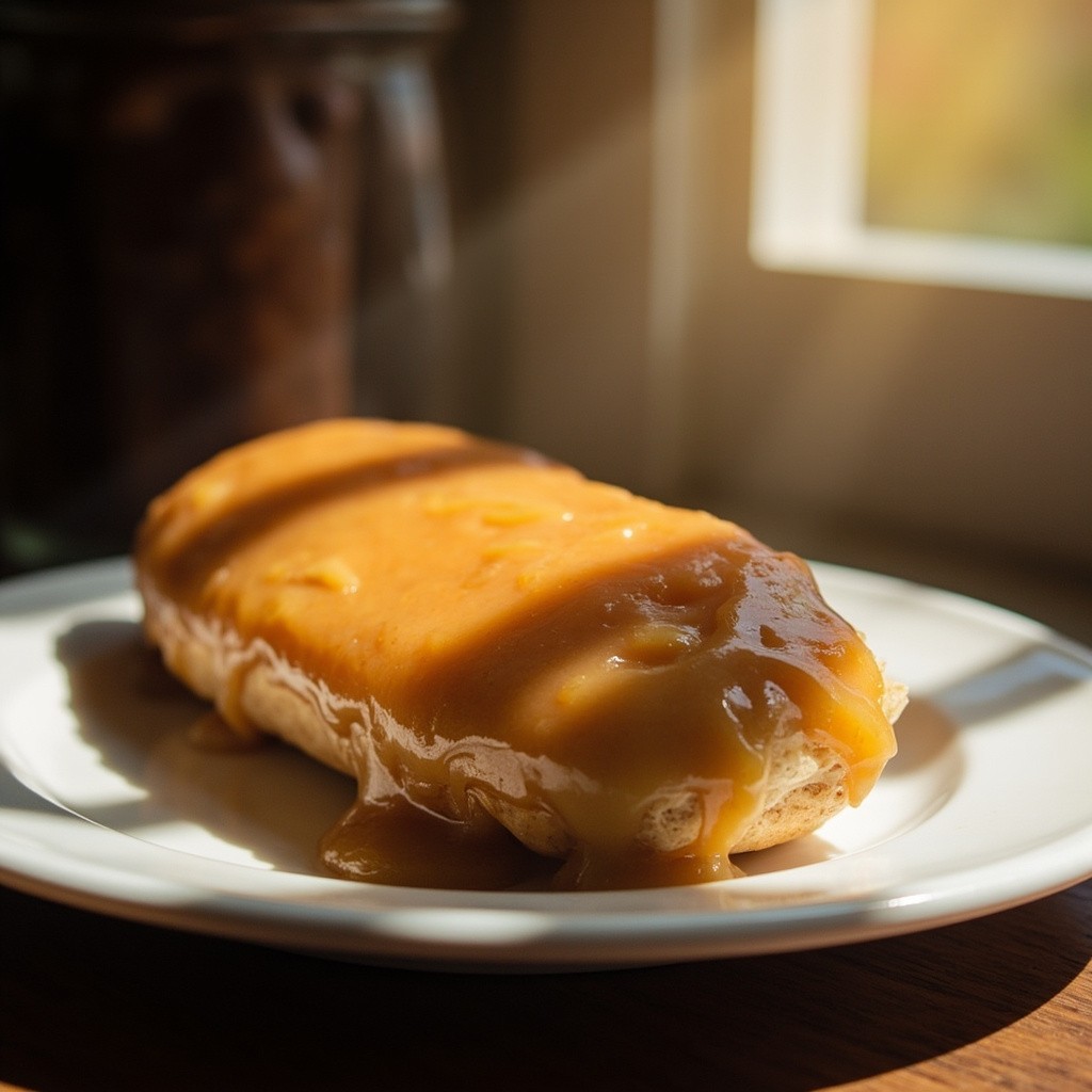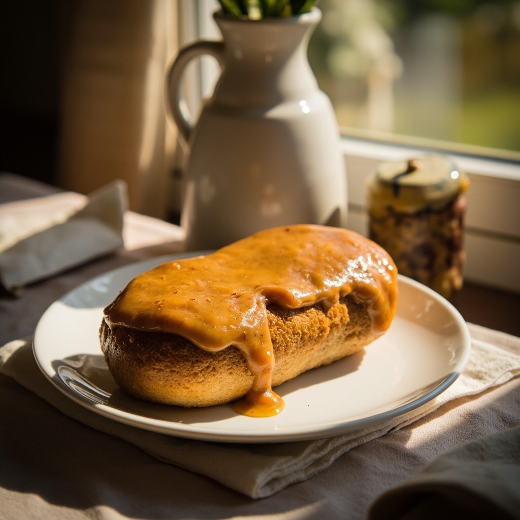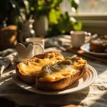 Cozy Morning Scene with Warm French Bread and Dulce de Leche on White Ceramic Plate