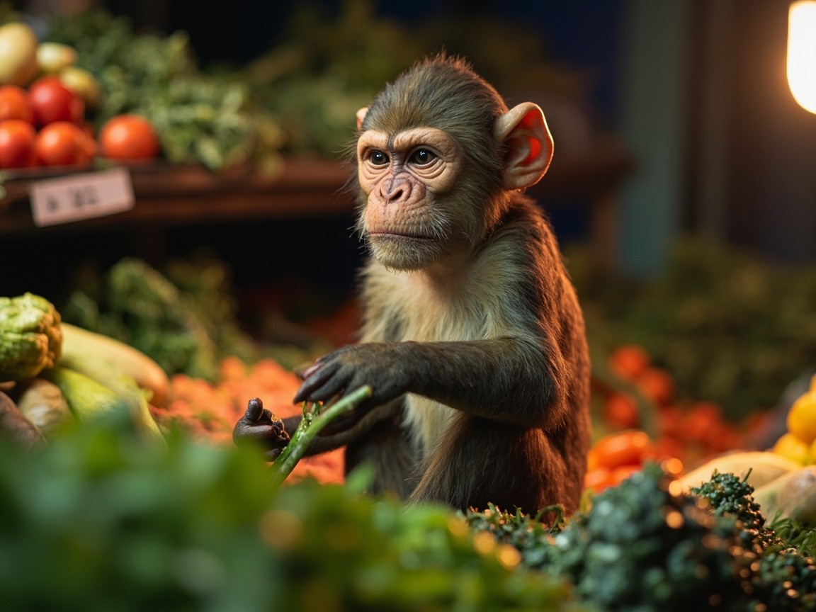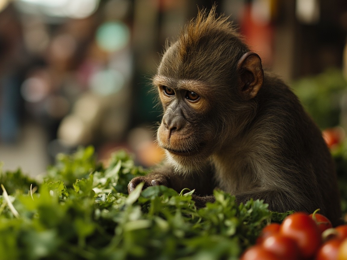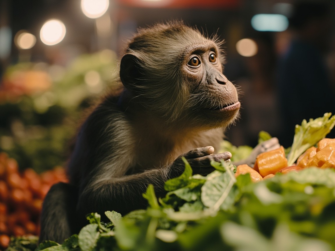 Monkey Selling Vegetables in Market and Crying Video