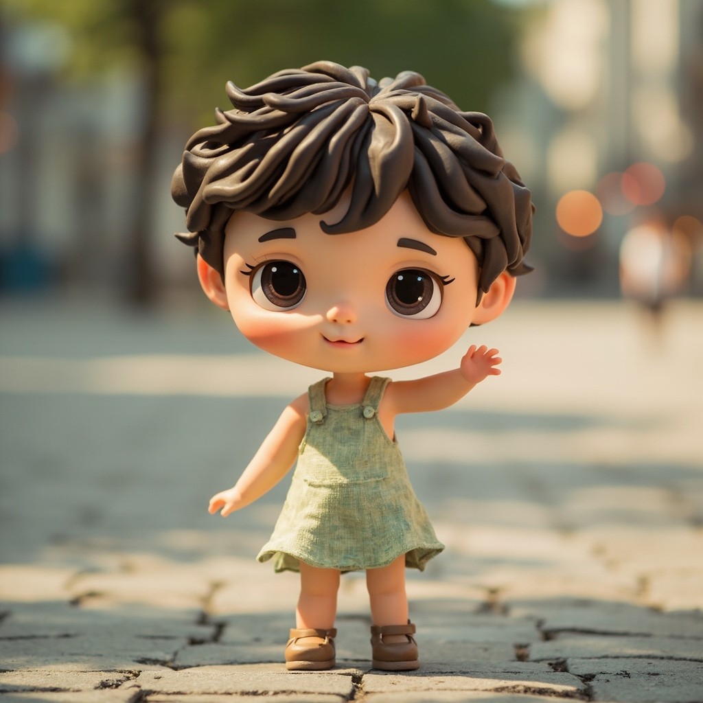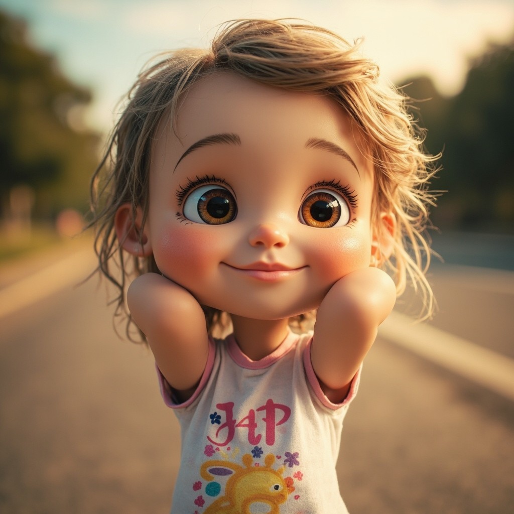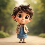 Cute 3D Cartoon Style Kid with Blurred Realistic Background