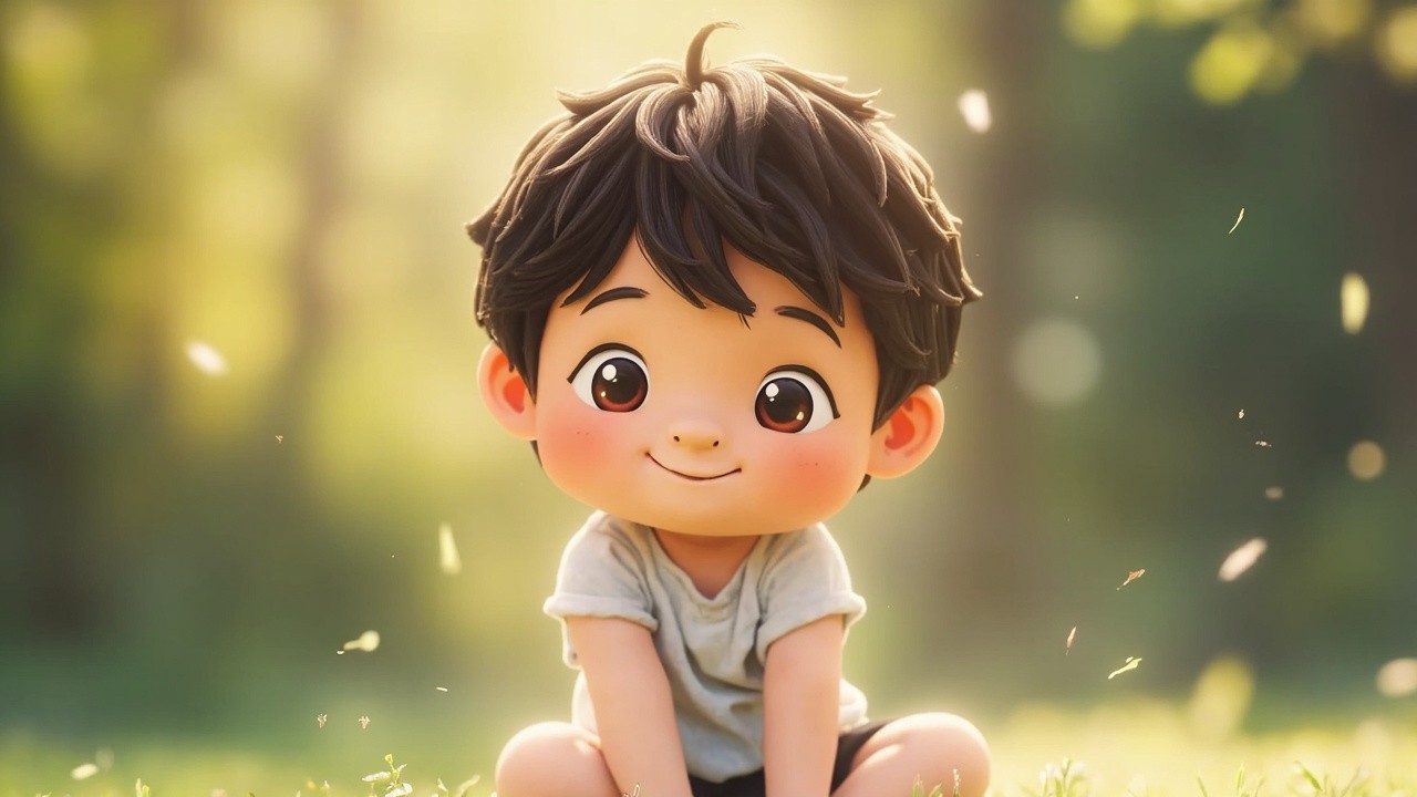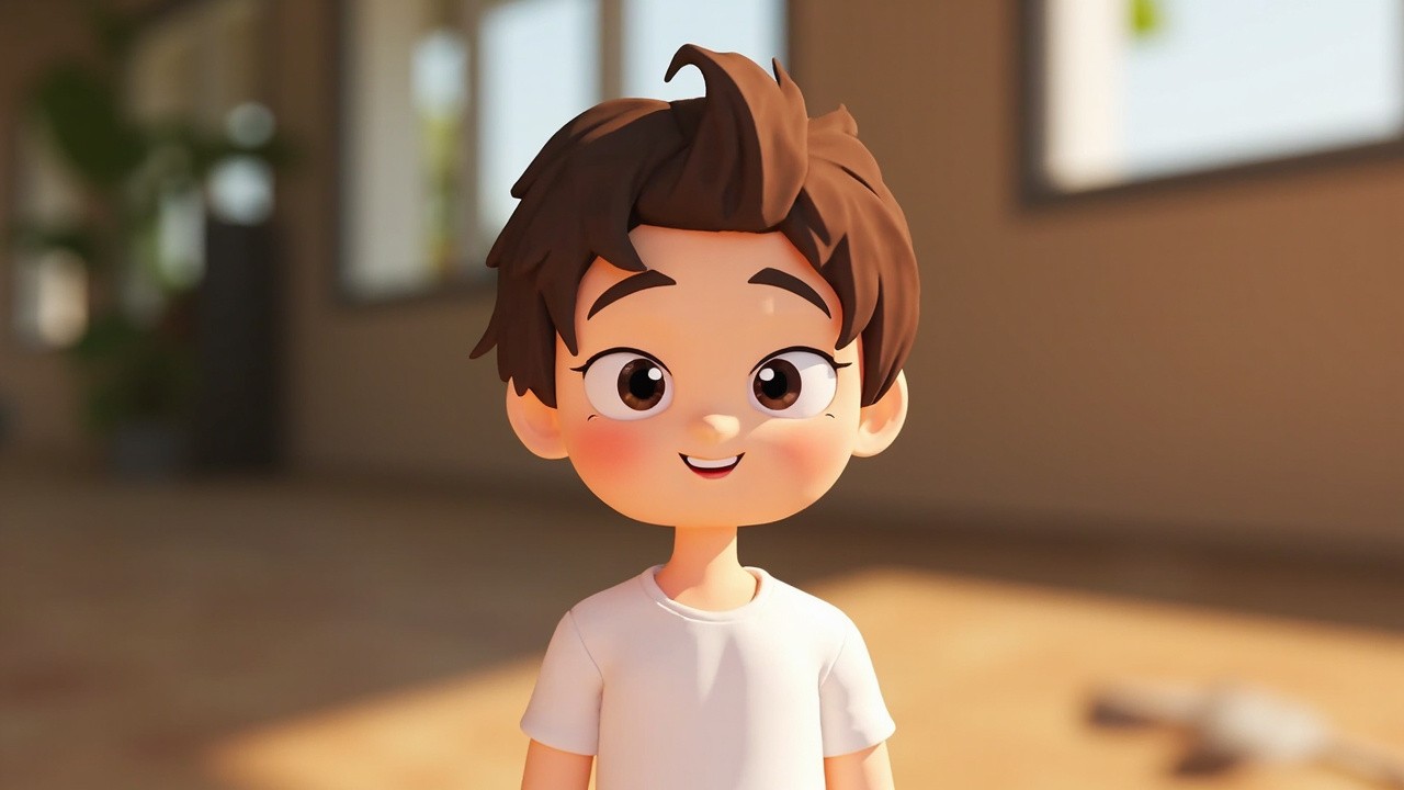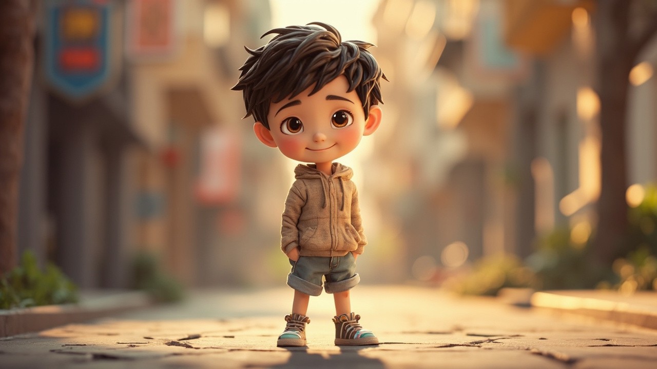 Cute 3D Cartoon Kid with Realistic Blurred Background