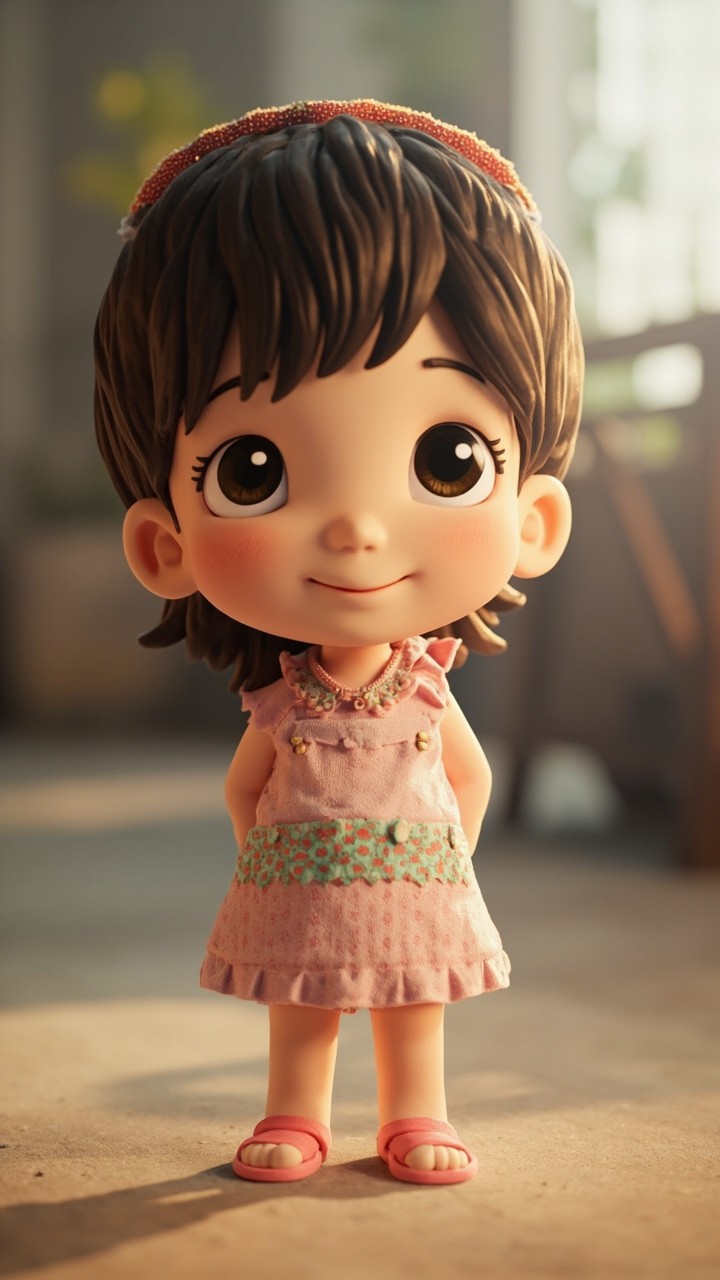 Cute 3D Cartoon Kid with Realistic Blurred Background