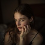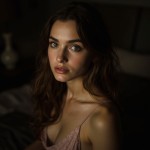 Delicate and Elegant Young Woman in a Softly Lit Bedroom