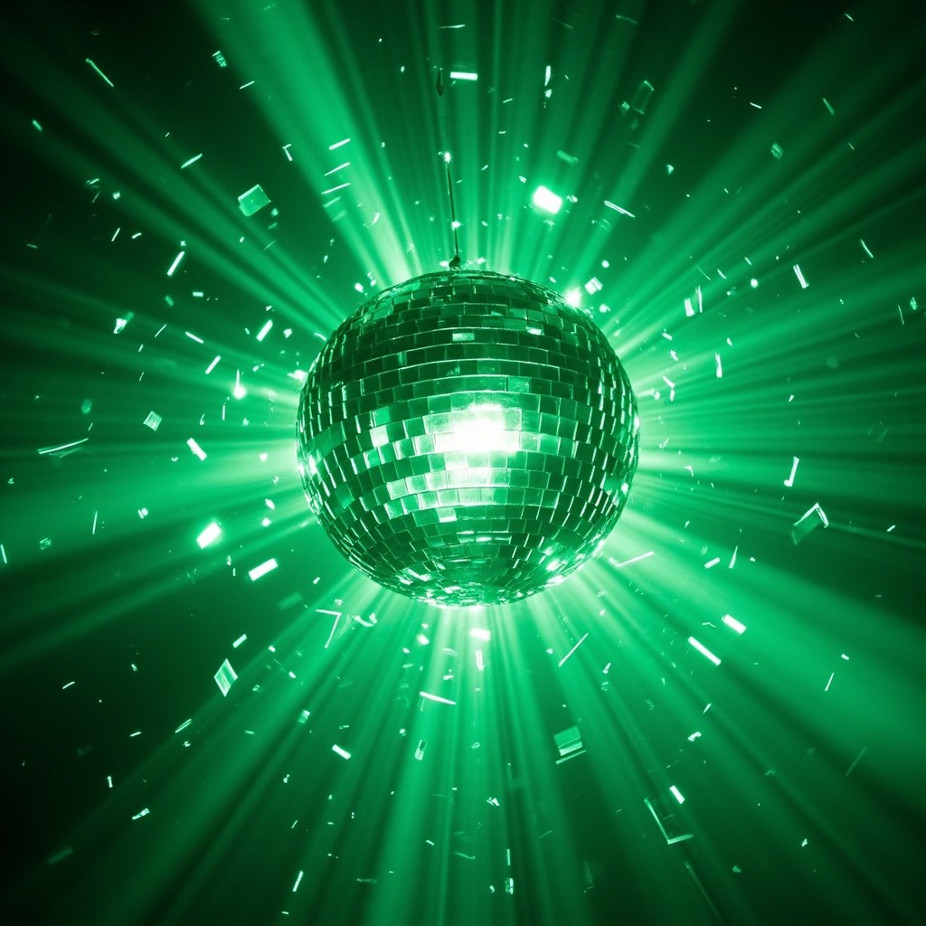 Disco Ball Bursting Glitters in Mint Green Light