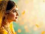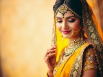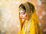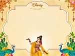 Hindu Wedding Invitation, Yellow Dressed Bride, Disney and Peacock Theme
