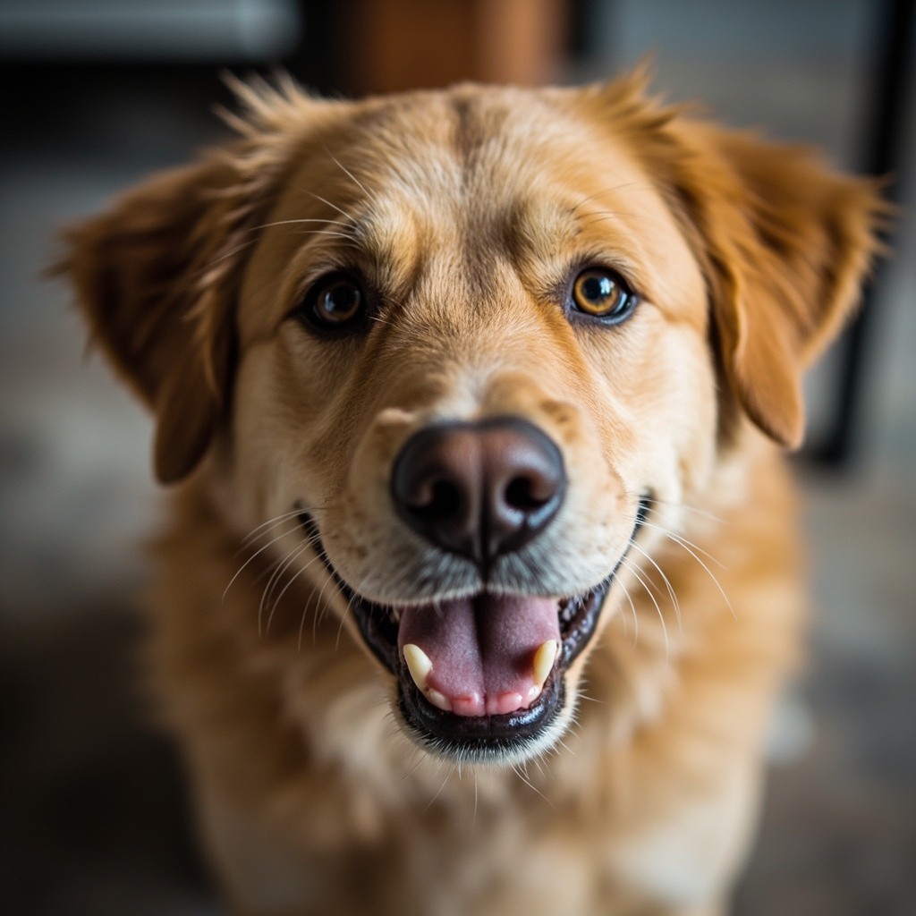 Smiling Dog Retrieving Food