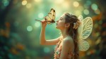 beautiful fairy with butterfly of dragonfly wings in the magic forest, fantasy, magic, dreamy, fantasy background, pastel colors, by Miles Aldridge, in style of carsten nicolai 20h beautiful fairy with butterfly of dragonfly wings in the magic forest, fantasy, magic, dreamy, fantasy background, pastel colors, by Miles Aldridge, in style of carsten nicolai