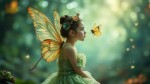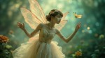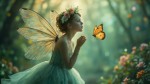 Pastel Fairy with Dragonfly Wings in Magic Forest Background