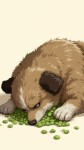 Fantasy Dog Fainting Mid-Collapse with Green Peas Illustration