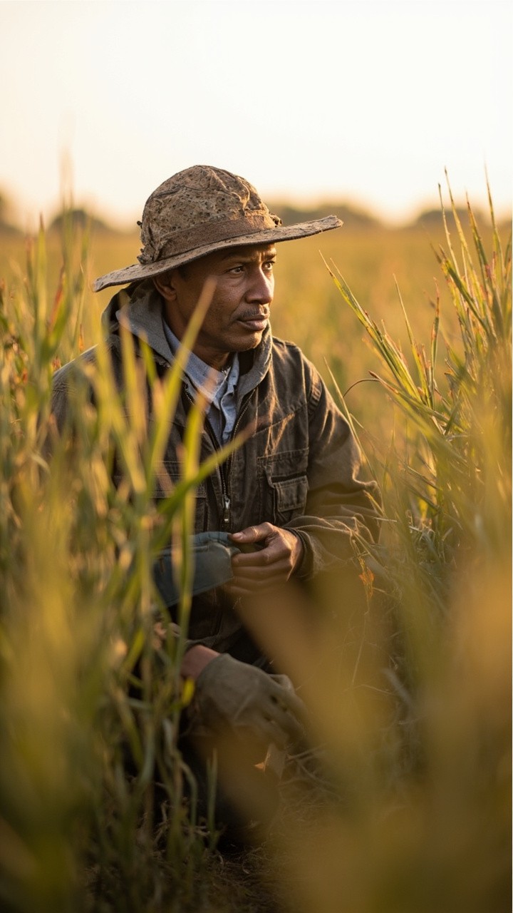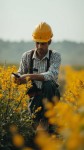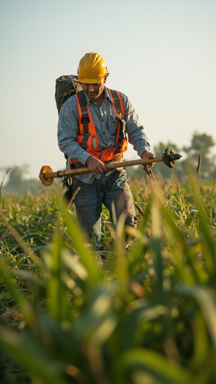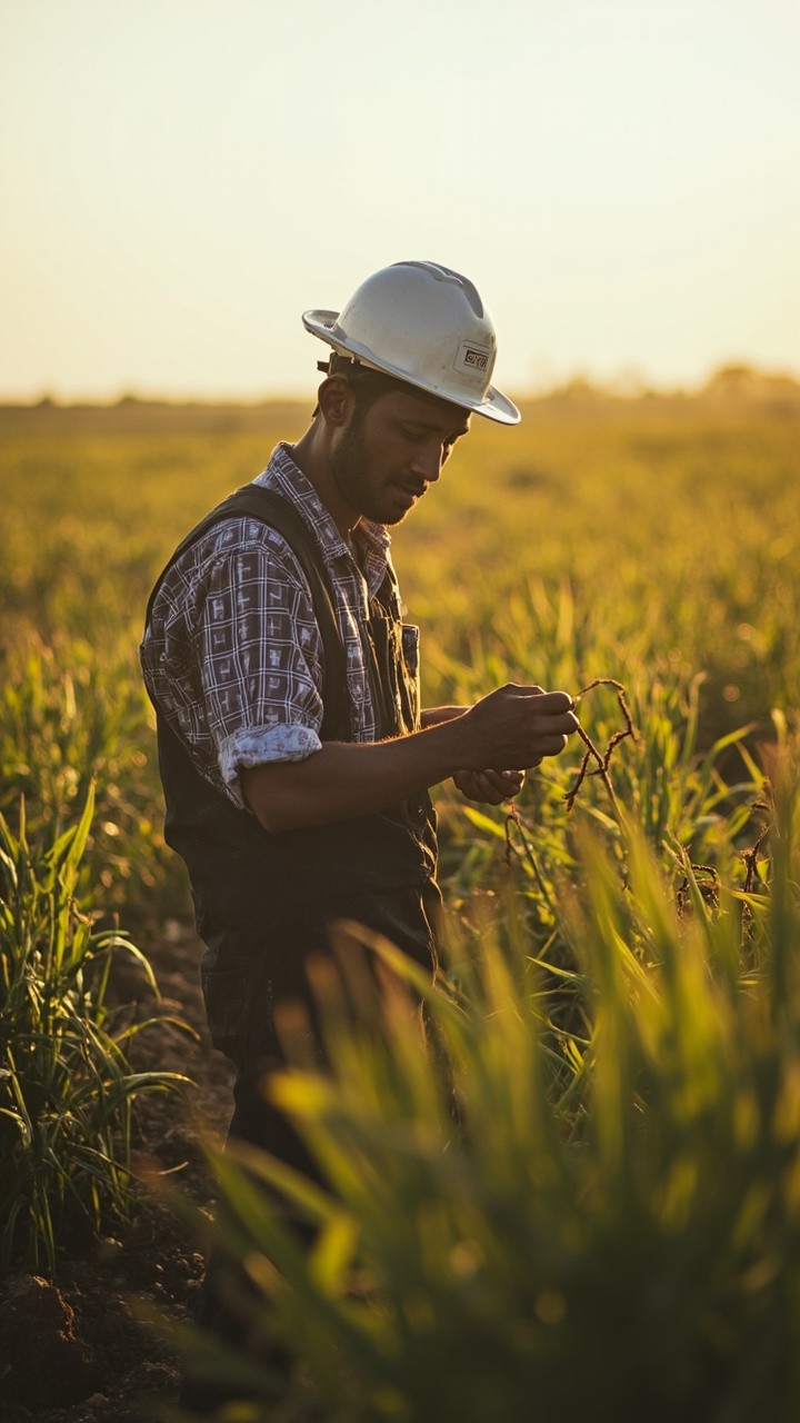 Rural Worker in Field with Safety Measures