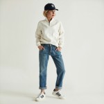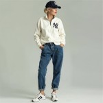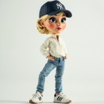 Full Body Image of a Fashionable 40-Year-Old Woman in NY Yankee Cap and Adidas Sneakers