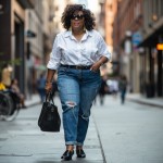 Chic Plus Size Woman in Fashionable Outfit on City Street