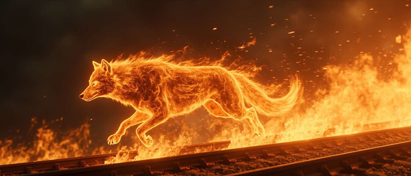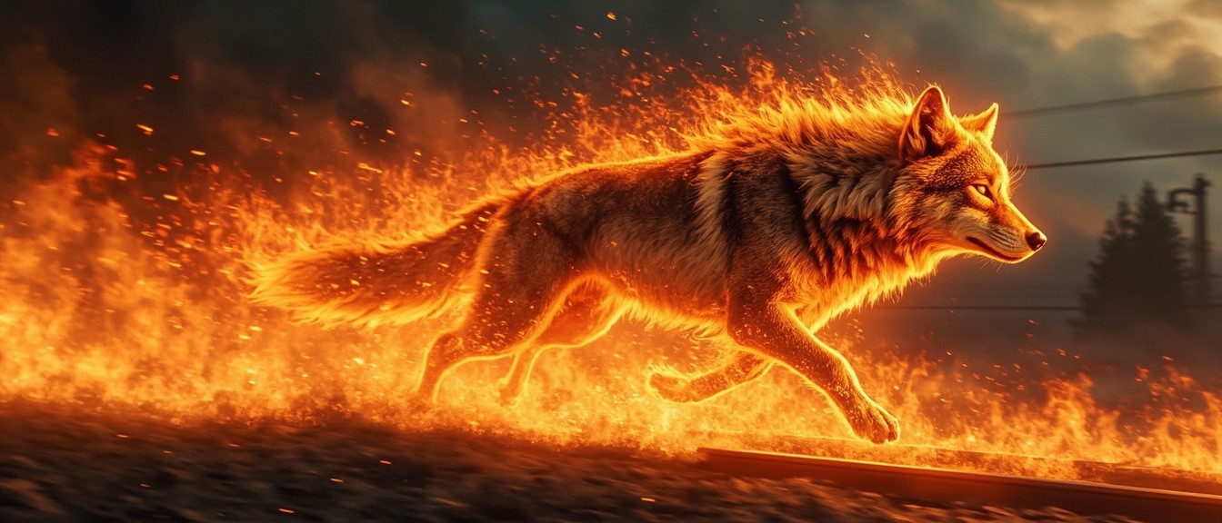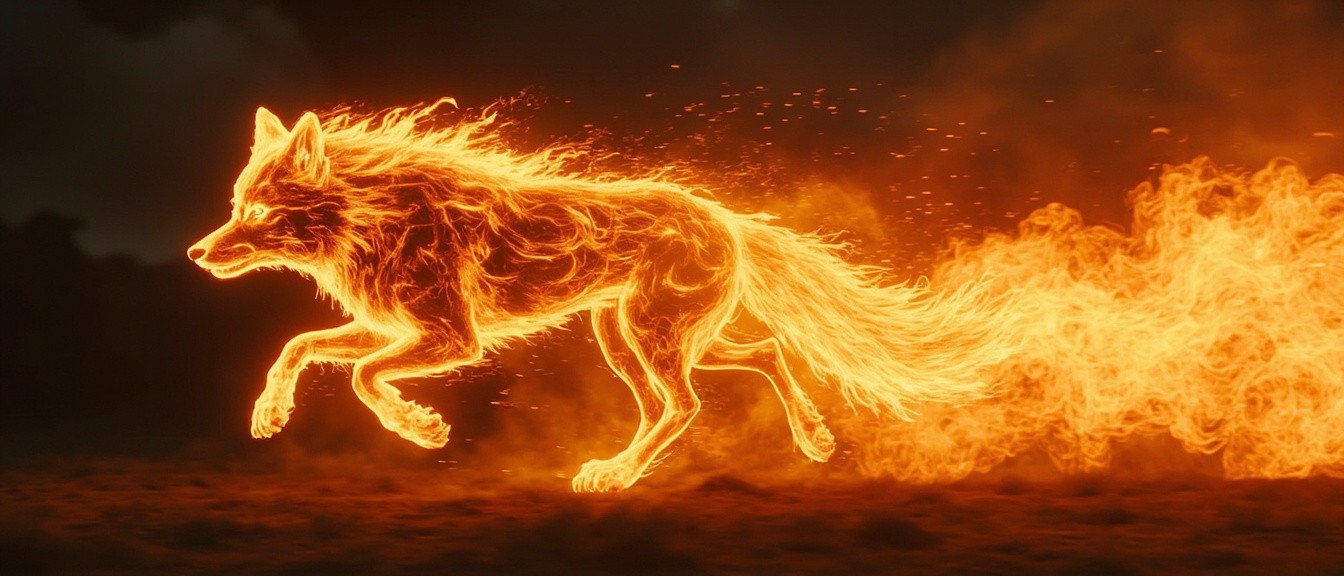 Fire Wolf Running with Flame Trail