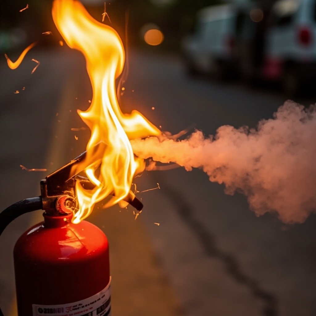 Fire Extinguisher Putting Out Small Fire from Distance