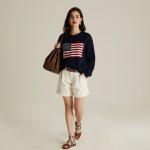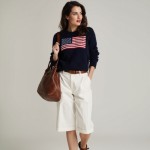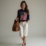 Fit Brunette Woman in American Flag Sweater and White Shorts