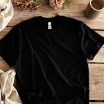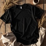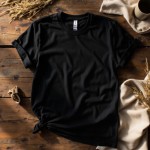 Folded Unisex Black T-Shirt with Rustic Props Mockup