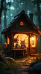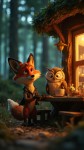 Fox and Owl Running Café in Cozy Forest, Pixar-Style