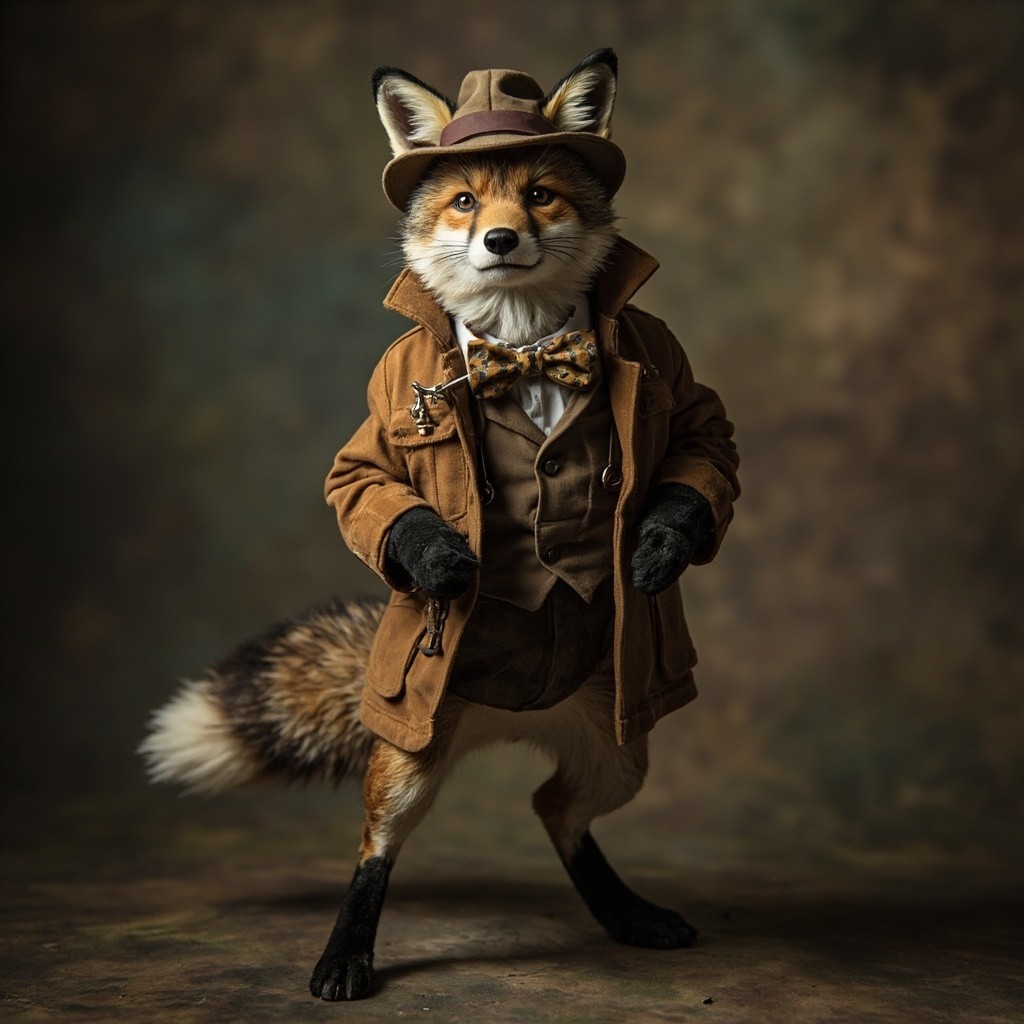 Detective Fox Standing on Hind Legs